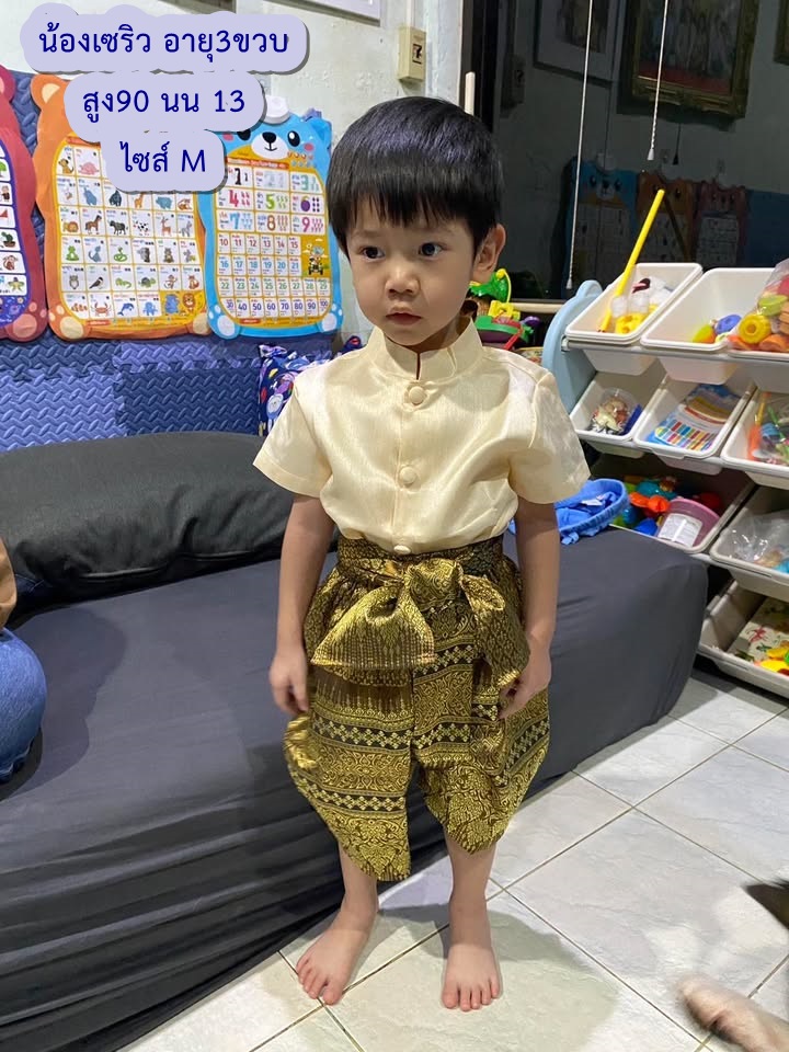 ชุดไทยเด็กชายแขนสั้นพร้อมผ้าพาด พี่หมื่น สีชมพูพีช พรพิมล